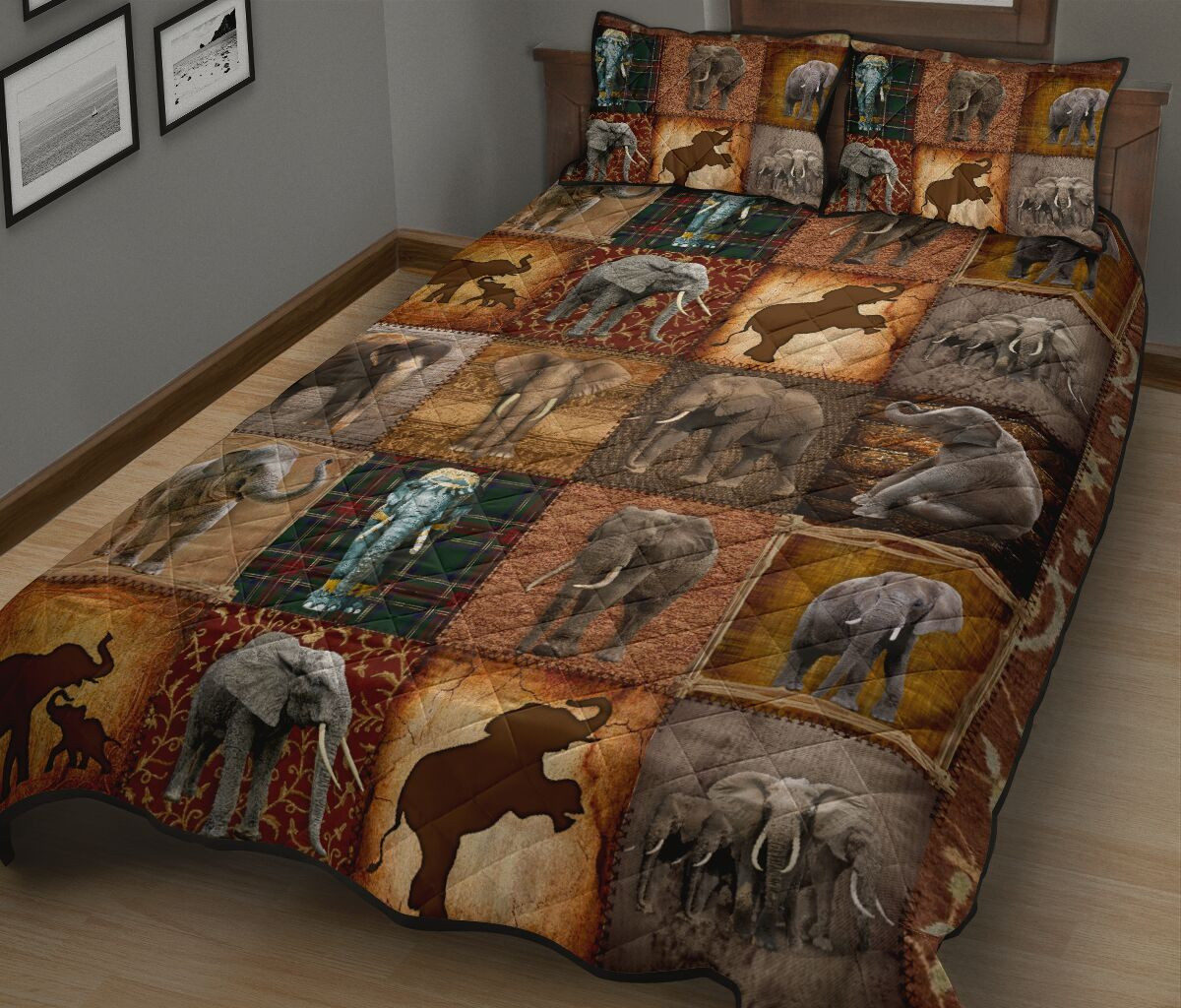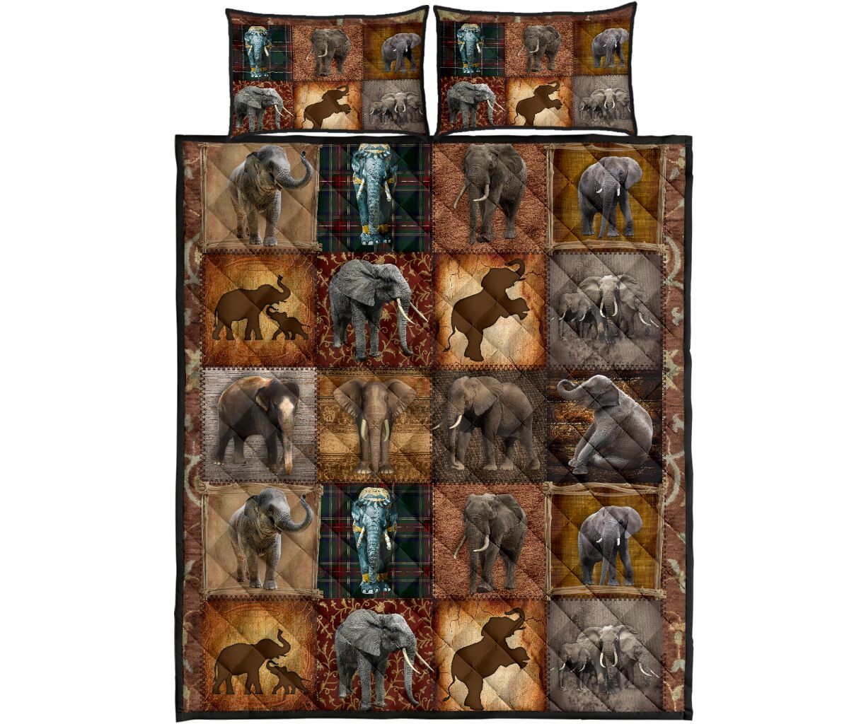 Elephant Old Style Quilt Bed Set