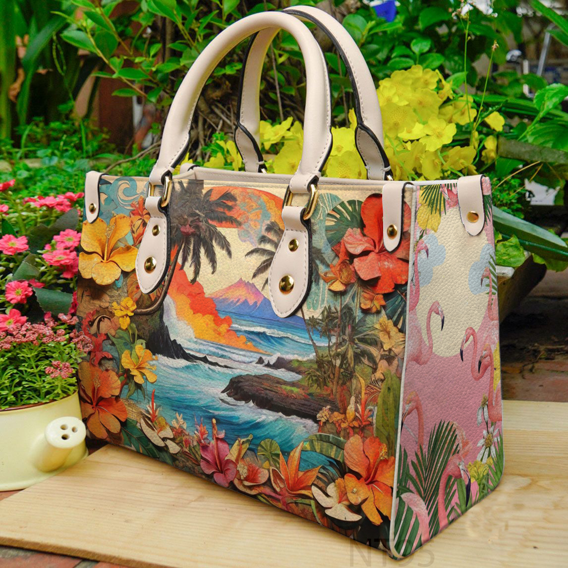 - It is roomy and comfortable to carry thanks to its shoulder straps and rolled leather top handles. Fashioned from supple-grained leather printed on both sides creates a stylish contrast in color.