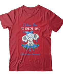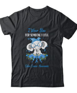 I Wear Blue For Colon Cancer Awareness Ribbon Elephant